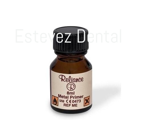 Para adherir oro y acero inoxidable. El Metal Primer de Reliance está destinada a ser usado como acondicionador de superficies metálicas para adherir con un adhesivo. El Metal Primer creará una adhesión química entre metales preciosos y no preciosos y un adhesivo.