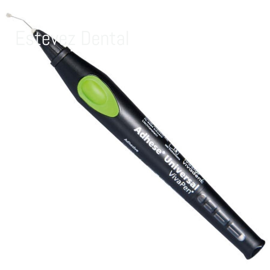 Adhesión universal en un formato avanzado . Aplicación universal: indicado para procesos de adhesión indirectos y directos, ya sea con técnica de autograbado, grabado selectivo del esmalte o grabado total. Adhese Universal es un adhesivo universal monocomponente y fotopolimerizable. El formato VivaPen asegura una aplicación directa en boca de manera rápida y conveniente. El material sobrante se reduce al mínimo, lo que resulta en una optimización de la eficiencia. Resultados predecibles. Consistente fuerza de unión independientemente de la técnica usada. Sensibilidad postoperatoria virtualmente inexistente. Al no contener acetona, el solvente hidrofílico que contiene Adhese Universal, asegura una humectación óptima de la dentina y el esmalte. Esto resulta en una mejor infiltración de los túbulos dentinarios y posterior sellado óptimo para así reducir el riesgo de microfiltraciones y sensibilidad postoperatoria. Con Vivapen podrá realizar más del triple de aplicaciones por ml que con el clásico formato en bote. La sencilla activación con un 'click' permite al clínico controlar la cantidad exacta de material que usará en cada proceso. Ya no será necesario dispensar el adhesivo en una paleta, el material residual desperdiciado prácticamente desaparece. Con los 2 mililitros de adhesivo existente en un Vivapen es suficiente para realizar aprox. 190 aplicaciones individuales.