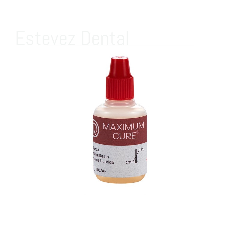 El Sellador Maximum Cure se fijará en una capa fina. Un sistema único catalizador previene de interferencias de oxígeno durante la polimerización. Toda la superficie lingual o labial del diente puede ser sellada. Está formulado con un monomero patentado. De curado químico, el sellador Maximum Cure permite sellar múltiples dientes en el tiempo que sellaría un diente con un material fotopolimerizable.