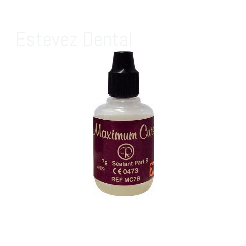 El Sellador Maximum Cure se fijará en una capa fina. Un sistema único catalizador previene de interferencias de oxígeno durante la polimerización. Toda la superficie lingual o labial del diente puede ser sellada. Está formulado con un monomero patentado. De curado químico, el sellador Maximum Cure permite sellar múltiples dientes en el tiempo que sellaría un diente con un material fotopolimerizable.
