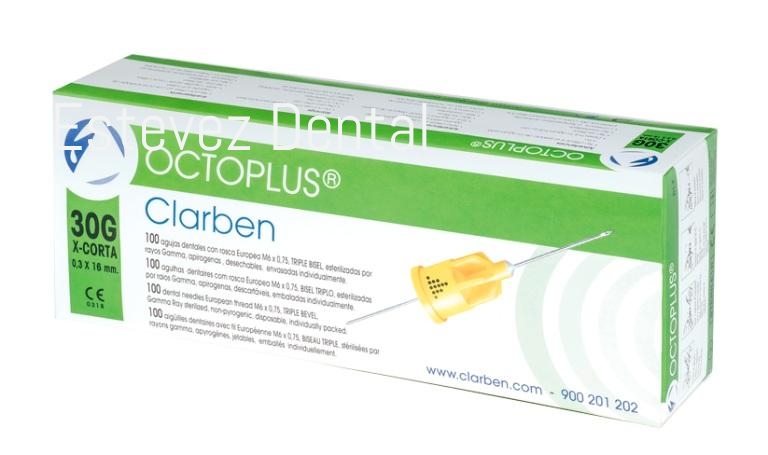 Las agujas dentales Octoplus® están esterilizadas por Rayos Gamma, selladas y siliconadas para inyección de un solo uso.