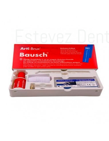 Arti-Brux® es una pintura indicadora roja que se aplica con un pincel (producto de un solo uso) sobre las superficies oclusales a probar. Después del secado, Arti-Brux® forma una capa resistente a la saliva, delgada y uniforme. Para diagnosticar las parfunciones (especialmente el bruxismo), se debe aplicar Arti-Brux® en la férula dura. Debido a las abrasiones de color, las áreas de contacto se vuelven claramente visibles.