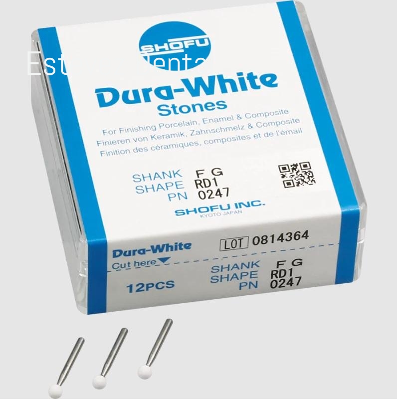 Dura-White Stones son ideales para el pulido y contorneado de esmalte, composites, compómeros y porcelanas. Están fabricados con micrograno de óxido de aluminio. Alto rendimiento sin vibraciones. Larga duración. De color blanco.