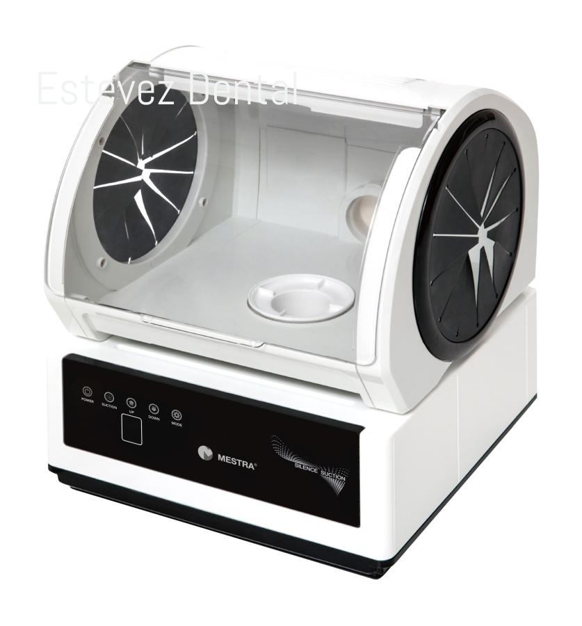 Caja de repaso para clínica dental con la aspiración de sobremesa Sirocco S incorporada.