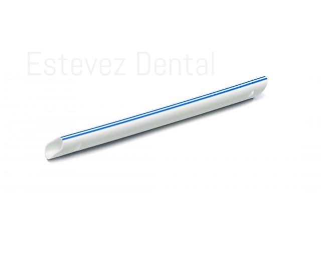 Tubo aspirador desechable de doble ventilación con uno extremo tradicional de 45 ° y un extremo en forma de S. El agujero en cada extremo reducen el efecto ventosa.