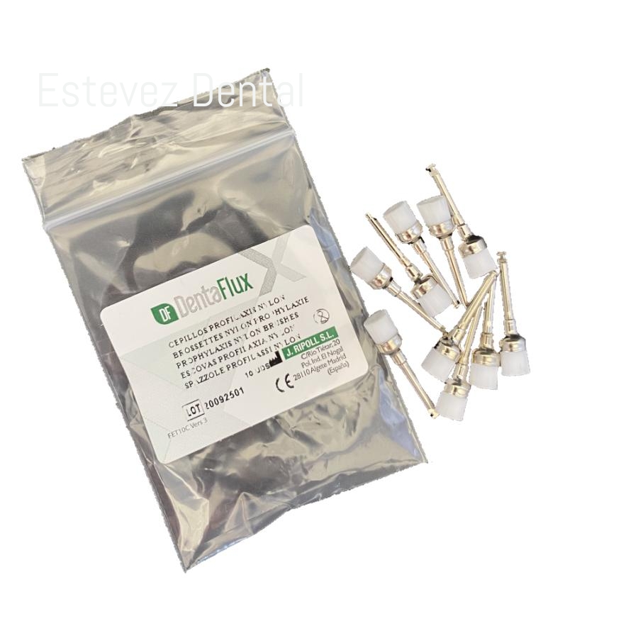 Cepillos para realizar la profilaxis. Los pelos tienen la dureza adecuada para realizar una limpieza óptima sin dañar la superficie de los dientes.