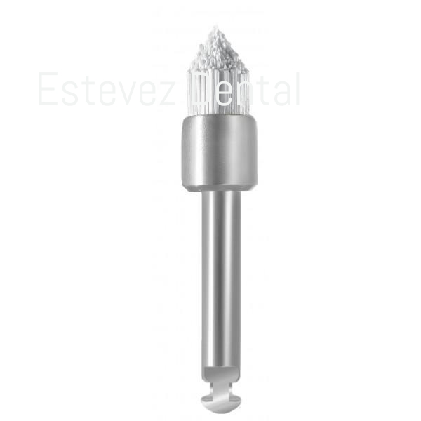 Cepillo de nylon para profilaxis. Acabado en punta y de dureza media. Para contra-ángulo.