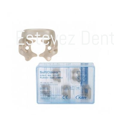 Clamp universal para uso en molares, ideal para el aislamiento dental con dique de goma. Su diseño y fabricación sintética consigue un buen agarre y firmeza al distribuir las fuerzas por toda la circunferencia cervical del diente a la vez que mantiene la integridad de los tejidos blandos gracias a sus bordes no cortantes.