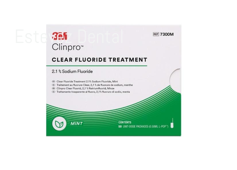 El tratamiento con flúor 3M™ Clinpro™ Clear es una fórmula con base acuosa y libre de colofonia, lista para aplicar, que proporciona protección para las superficies de esmalte y dentina. Este tratamiento con flúor cuenta con una fórmula lista para actuar que facilita la absorción eficaz del flúor con un tiempo mínimo de contacto de tan solo 15 minutos.