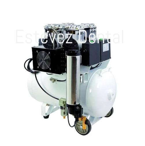 Destaca su funcionamiento extremadamente silencioso (nivel sonoro inferior a los 60 dB), su sencillo mantenimiento (pistón seco), y su excelente fiabilidad. La presión de servicio puede alcanzar los 8 bares. Se suministran con dos manómetros (presión de calderín y de servicio), manorregulador de salida y juego completo de válvulas para el purgado. A los dos modelos se les puede acoplar un secador con purga automática.