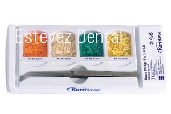 Las cuñas interdentales Hawe de madera de arce han sido modeladas de acuerdo a la anatomía del espacio interdental. Las superficies cóncavas laterales se adaptan perfectamente a la morfología interdental. La extremidad cuadrada permite una fácil introducción de la cuña y la punta ligeramente doblada hacia arriba impide herir las papilas interdentales. Las cuñas interdentales son de madera inastillable, que garantiza estabilidad y una cierta compresión, de manera que quede asegurada una perfecta adaptación al diente.