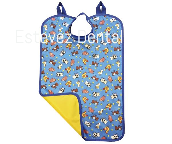 Delantal anti-X para el paciente. Sector dental / exámenes endorales. Modelo con cuello incorporado para la protección de la glándula tiroides. Dos modelos: adulto y niño. El cuello está unido al delantal. Cinta de velcro en la parte posterior para ajustar el cuello. Nivel de protección: Eq.Pb de 0.35mm. Material radioprotector forrado en ambos lados con tejido de nylon. NXR® tradicional basado en plomo.