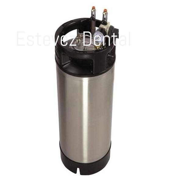 Tanque para agua destilada de 18 litros de capacidad. Permite almacenar el agua en su interior para posteriormente trasvasarla al aparato que la va a usar (autoclave, limpiadora de vapor, etc.), de manera cómoda y rápida. Basta sólo con abrir la válvula de salida para que el agua presurizada comience a fluir. El empleo de acero inoxidable en la construcción del tanque asegura higiene y facilidad de limpieza. La tapa superior —fácilmente practicable—, permite un sencillo rellenado. La presión de servicio puede ser regulada mediante un manorregulador. El aparato se suministra con toda la aparamenta neumática para su empleo. Las conexiones de entrada y salida se realizan a tubo de 6 mm. También dispone de doble válvula de seguridad para eliminar cualquier riesgo. Altura: 68 cm / Diámetro: 22,5 cm / Capacidad: 18 L / Presión de trabajo: 5 bar / Peso: 4,7 kg / Conexión: Tubo de 6 mm