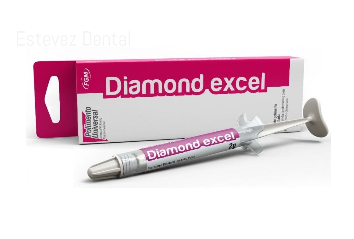 Pasta diamantada de pulido universal en base de diamante micronizado. Puede ser utilizada con todos los materiales restauradores. Granulación extrafina: 2 a 4 micrones.