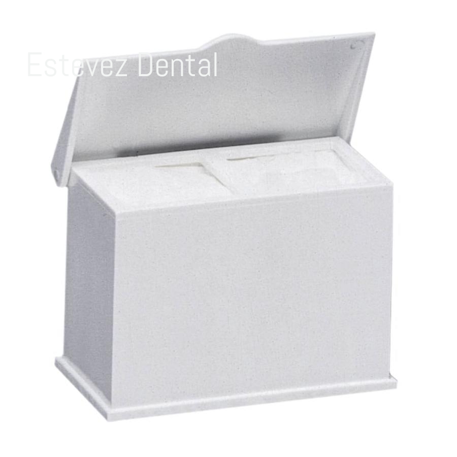 Dispensador de gasas doble fabricado en plástico autoclavable (134˚C). Para gasas de 5x5 cm. Color blanco.