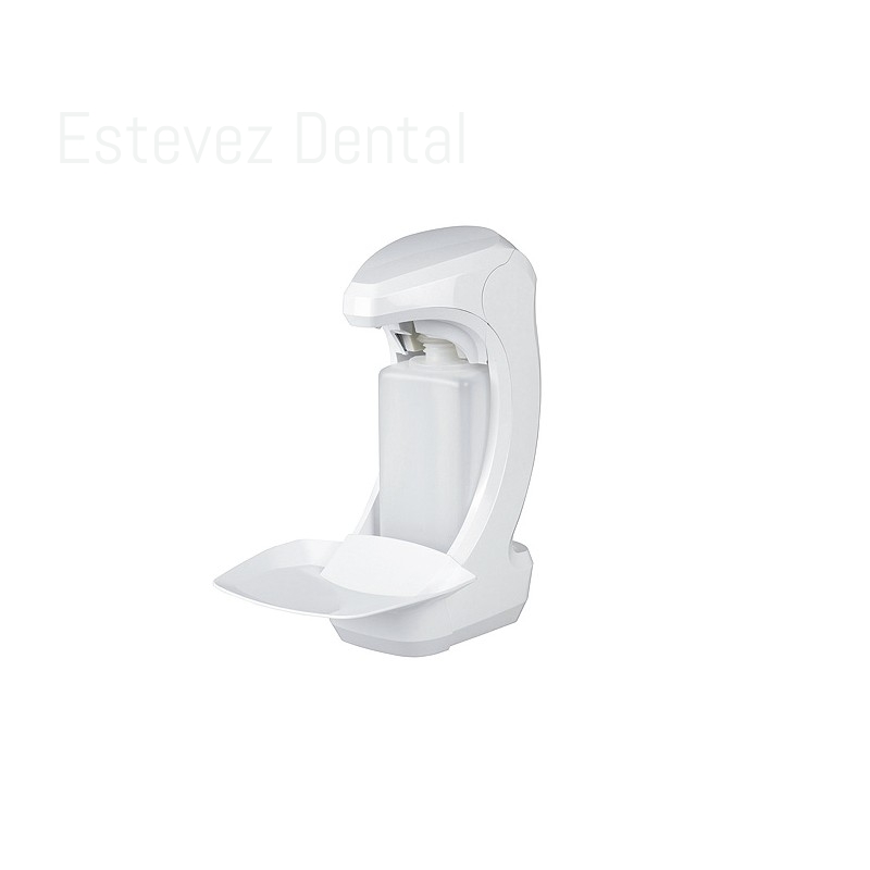 Carcasa de plástico blanco, bomba de larga duración, dosis 1,5 ml, número de golpes ajustable (1-3), bandeja de goteo blanca