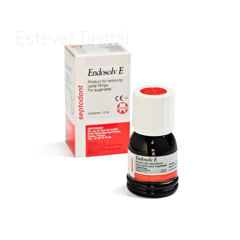 Disolvente de cemento endodóntico que, en casos de retratamiento, consigue un reblandecimiento del cemento convencional en base de óxido de zinc-eugenol y de aquéllos en base de resina fenólica. Ayuda en la eliminación del sellador de canal en base a óxido de zinc-eugenol o en base de resina fenólica. Reduce el riesgo asociado al uso de instrumental motorizado durante el tratamiento mecánico.