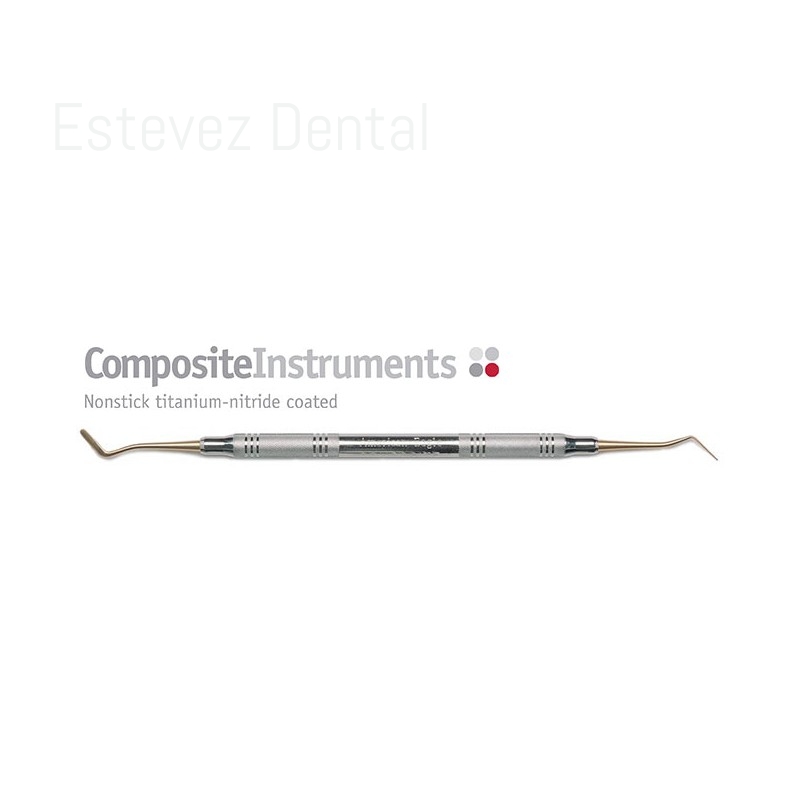 ESPÁTULA COMPOSITE TAMAÑO MEDIOCARACTERÍSTICAS:- El recubrimiento de nitruro de titanio es un 40 % más duro que el acero. De acuerdo con las investigaciones, se trata de la mejor superficie antiadherente para la colocación, modelado y esculpido de los composites- Nuestro recubrimiento especial es resistente a los más variados procedimientos de limpieza y esterilización, entre los cuales se incluye también a la limpieza ultrasónica- Los ligeros mangos de acero de gran diámetro proveen mejor ergonomía y control preciso en caso de contornos delicados y moldeados
