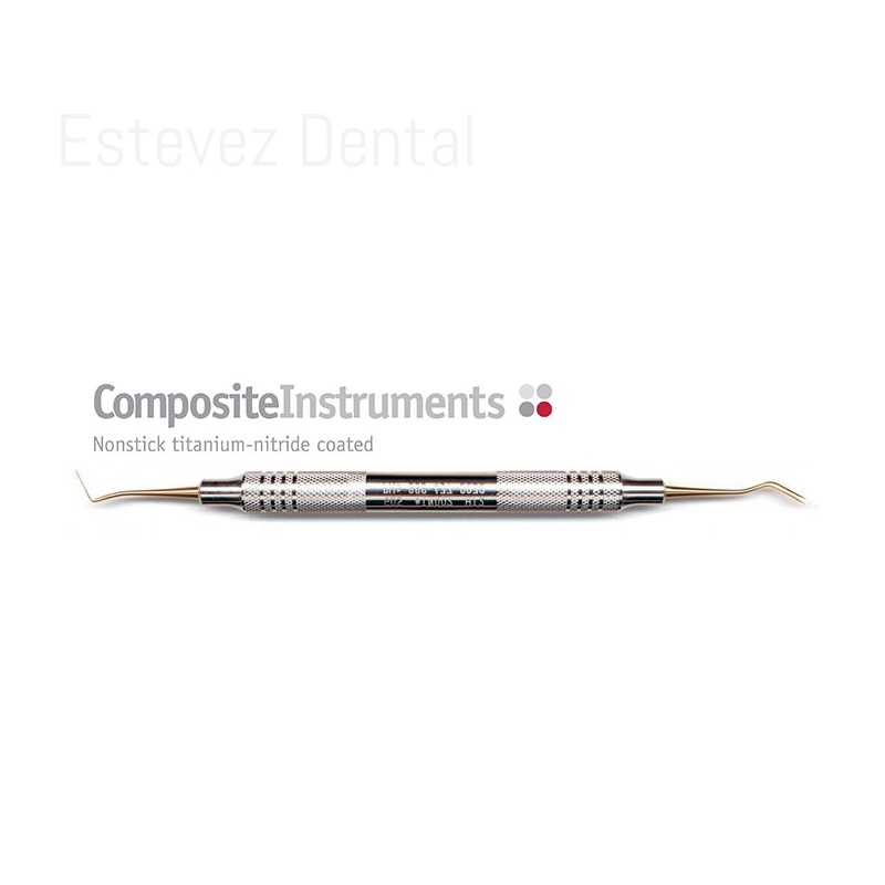 ESPÁTULA COMPOSITE EXTRAFINACARACTERÍSTICAS:- El recubrimiento de nitruro de titanio es un 40 % más duro que el acero. De acuerdo con las investigaciones, se trata de la mejor superficie antiadherente para la colocación, modelado y esculpido de los composites- Nuestro recubrimiento especial es resistente a los más variados procedimientos de limpieza y esterilización, entre los cuales se incluye también a la limpieza ultrasónica- Los ligeros mangos de acero de gran diámetro proveen mejor ergonomía y control preciso en caso de contornos delicados y moldeados