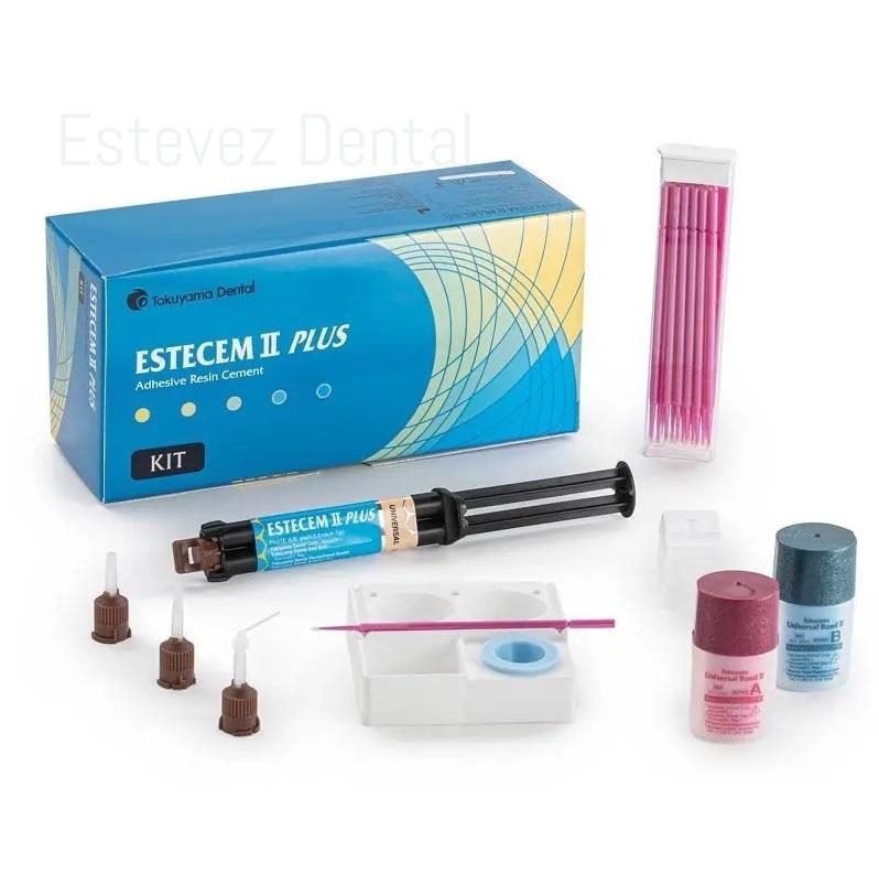 1 jeringa de 4,6 ml + 2 botes Universal Bond A/B de 5 ml cada uno + 5 puntas de mezcla marrones + 5 puntas intraorales + 25 microaplicadores + 15 pocillos de mezcla