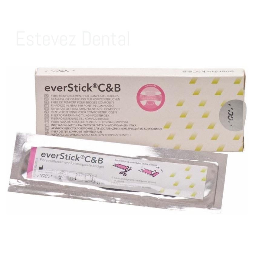 EverStick son fibras de vidrio de refuerzo, desarrolladas para una Odontología mínimamente invasiva que preservan los tejidos sanos del paciente tanto como es posible. Está compuesto de fibras de vidrio, un polímero termoplástico y una matriz de resina polimerizable de refuerzo de los composites dentales. EverStick está preimpregando de composite y están especialmente indicadas para prótesis estéticas de coronas y puentes, todo tipo de ferulizaciones tanto en Perio como en Ortodoncia y en casos de trauma, restauraciones radiculares, etc. - Fácil de usar. - Las fibras no se deshilachan. - Duradero a largo plazo. - Ahorro de tiempo: trabajo en una sola visita. - Fácil de mantener. - Sin metal. - Flexibilidad interproximal. - Estética natural.