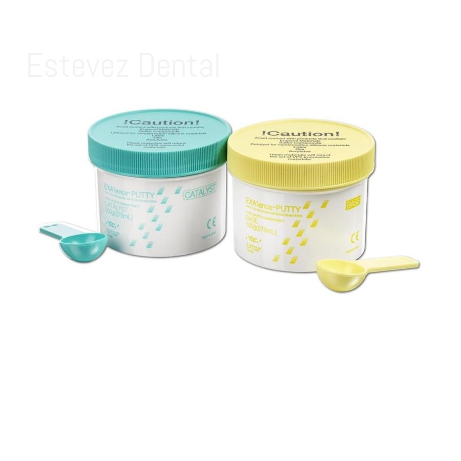 Material de Impresión de Vinil Poliéter Silicona (VPES). Alta precisión y excelentes resultados para que tomar una impresión perfecta parezca un juego de niños. GC ha reunido las mejores cualidades de dos grandes materiales para formar la siguiente generación de material de impresión: Vinil Poliéter y Silicona (VPES). EXAlence ofrece: -Hidrofi lia intrínseca para reproducir los detalles más fi nos, incluso en un ambiente húmedo. -Excelente fl uidez y características tixotrópicas para obtener todos los detalles y márgenes nítidos -Elasticidad superior con un alto grado de dureza para conseguir una alta resistencia al desgarro -Agradable sabor a menta -Amplia selección de tiempos de fraguado y viscosidade
