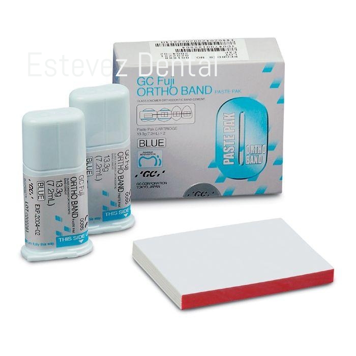 Resina de ionómero de vidrio modificado para realizar la unión ortodóntica de bandas y aplicaciones más sencillas. Fuji Ortho es el primer cemento de ortodoncia disponible como pasta en cartucho. - El pack dispensador permite distribuir el cemento de forma rápida y con más precisión, minimizando el desperdicio del mismo. - Se garantiza un manipulado óptimo por un film de grosor 3m, un tiempo de trabajo de 3 minutos 30 segundos y un tiempo de fraguado de 3 minutos. - El color de la pasta es azul, lo que facilita y agiliza la identificación del cemento residual. - Sin ácido aguafuerte. - Perfecta unión en ambiente húmedo y con alta descarga de flúor.