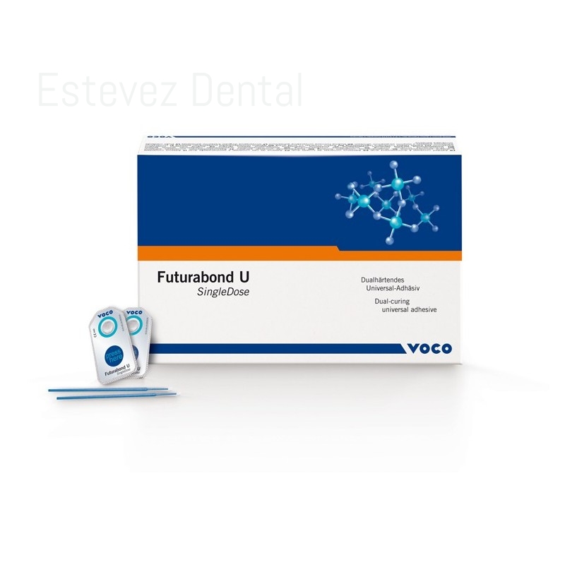 Futurabond U de curado dual en SingleDose es un verdaderamente universal en forma de aplicador monouso. Autograbado, grabado selectivo o grabado dentinario: con Futurabond U, puede elegir libremente, en función de la situación clínica en cuestión, pero también según su forma de trabajo personal, cómo desea acondicionar la substancia dental dura. Aplicado en una única capa, Adhesión fiable a diversos materiales como el metal, el óxido de circonio y el óxido de aluminio y la cerámica. Para restauraciones directas como indirectas. Sin necesidad de un activador adicional para el curado dual. El sistema SingleDose garantiza un trabajo sencillo y rápido.