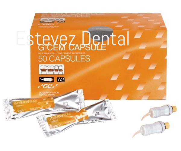 Cemento universal dual autoadhesivo de resina, disponible en cápsulas, diseñado para el cementado de restauraciones de cerámica sin metal, con metal o composite. La rapidez y simplicidad que usted quiere, con una alta fuerza de unión en la que usted puede confiar. Dada la alta demanda de sistemas CAD-CAM y restauraciones libres de metal , G-CEM fue desarrollado para dar solución a los materiales estéticos de hoy. 1. Universal: combina las ventajas del cemento convencional y las del cemento de resina. Indicado para todo tipo de restauraciones indirectas de cerámica, metal o composite. 2. Seguro: alta fuerza de unión a la estructura dental en todo tipo de restauraciones. Larga durabilidad y alta estabilidad de color. 3. Autoadhesivo: no necesita pretratamiento (sin grabado ácido, ni primer, ni adhesivo), sobre el diente ni sobre el trabajo protésico. 4. Sencillo: no es necesario usar dique de goma. En un solo paso se realiza la restauración aplicándolo directamente desde la cápsula. 5. Único: mayor liberación de flúor que cualquier cemento de resina. Indicado para: - Coronas, puentes, inlays y onlays de metal - Coronas, puentes, inlays y onlays de cerámica y composite - Metal prefabricado, fibra de vidrio y postes de cerámica.