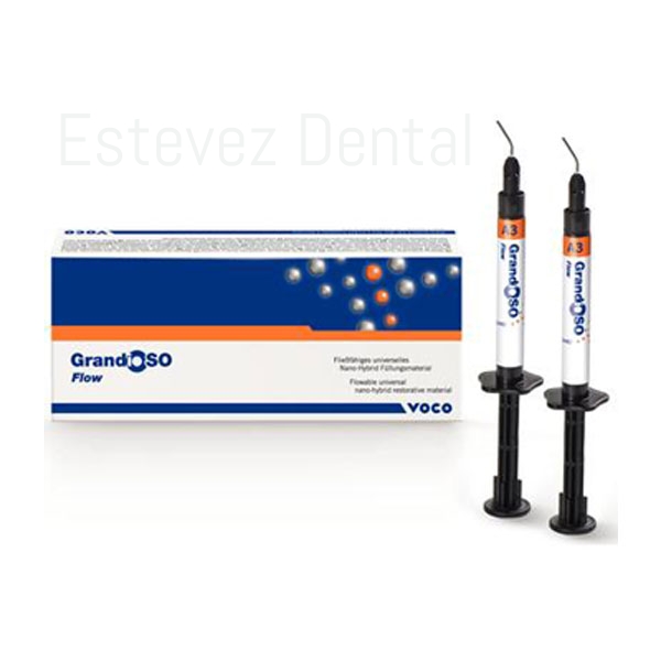 Flow: material de obturación nano-híbrido fluido y universal de viscosidad media ; Comportamiento de fluidez excelente con un mojado completo de las paredes cavitarias.