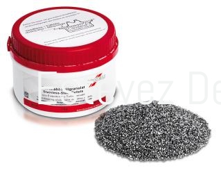 Granulado anticorrosivo de relleno con pulido galvánico para el revestimiento de modelos en los aparatos de termomoldeo. Gracias a la geometría cilíndrica de los granos, los modelos adoptan una posición firme y no se comprimen en el granulado.