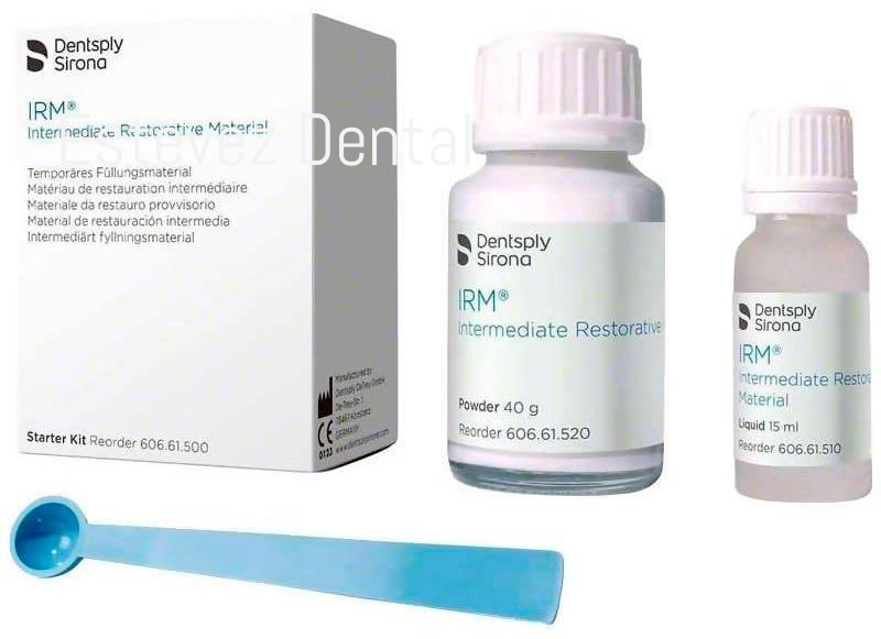 IRM KIT INTROCARACTERÍSTICAS:- IRM es un polimero reforzado de oxido de zinc eugenolUSOS:- Indicado para restauraciones temporales con una duracion no mayor de un año- Base en restauraciones definitivas con materiales que no contengan resinaCONTENIDO:- Polvo 40 g- Líquido 15 ml