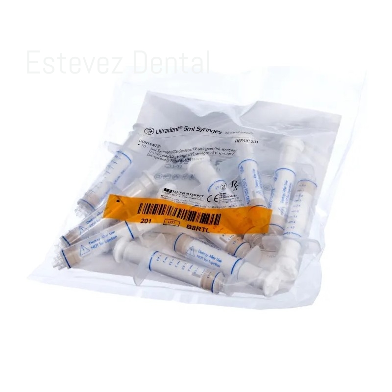 JERINGA 5 ml 10 udsCARACTERÍSTICAS: - Los bordes del cilindro de la jeringa están colocados para que el control/aprovechamiento sea totalDiseñada para: irrigantes para procedimientos supervisados en la consulta o por el dentista, así como solución Ultradent EDTA al 18 % y solución Ultradent de ácido cítrico.CONTENIDO: - 10 Jeringa vacia de 5 ml delivery