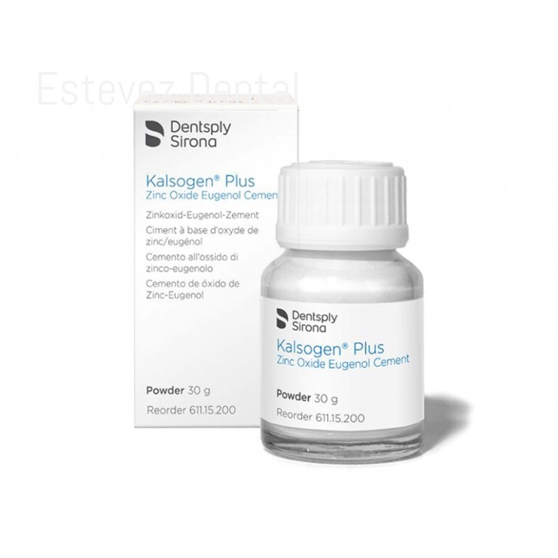 Kalsogen ® Plus es una combinación fácil de rápido ajuste de óxido de zinc eugenol de cemento que es ideal para varios usos, incluyendo:- Un revestimiento de la cavidad bajo la mayoría de los materiales restauradores.- Una suavización de obturación temporal en particular para las cavidades sensibles.- Un cemento provisional para coronas e incrustaciones.- Un sello temporal para apósitos de medicamento.Kalsogen ® Plus contiene eugenol, que ejerce una acción sedante para disminuir el dolor.