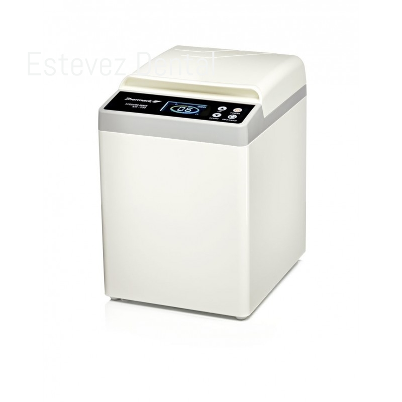 MEZCLADORA MX-300 ZHERMACKMX-300 es una mezcladora automática para alginatos que mejora significativamente la calidad del producto mezclado en comparación con el proceso manual y contribuye a estandarizar el proceso y a obtener resultados constantes y reproducibles.CARACTERÍSTICAS:- Mezcladora compacta que ocupa muy poco espacio en las superficies de trabajo- Alta velocidad de rotación centrífuga (3600 rpm) Doble movimiento: rotación y revolución- Diseño moderno con teclas táctiles y menor presencia de zonas retentivas- Pantalla digital en color con iconos indicativos de los diferentes estados de la mezcla- Estructura de metal barnizado- Bloqueo mecánico durante la mezcla- Posibilidad de memorizar el tiempo de mezcla (de 1 a 20 s)VENTAJAS:- Mezcla automática que reduce notablemente el volumen de burbujas dentro del material y ayuda a obtener un compuesto más homogéneo- Resultados reproducibles independientemente de quién sea la persona que haga la mezcla- Diseñ