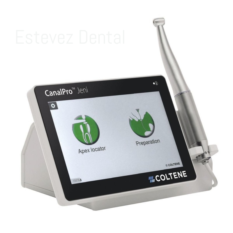 CANALPRO JENI MOTOR DE ENDODONCIALos Motores CanalPro son dispositivos endo que se utilizan junto con limas rotativas para preparar el conducto radicular.CARACTERÍSTICAS:- Motor de endodoncia con asistencia digital- Es un endomotor totalmente automático controlado eléctronicamente con un localizador de ápice integrado que hace que la preparación resulte de una facilidad, seguridad y eficacia sorprendentes- El sistema de asistencia automática del Jeni se adapta de forma continua a la anatomía individual de cada conducto radicular y guía la preparación mecánica y química paso a paso- Pantalla táctil en color de alto contraste y 7" Panorámica en claro formato horizontal