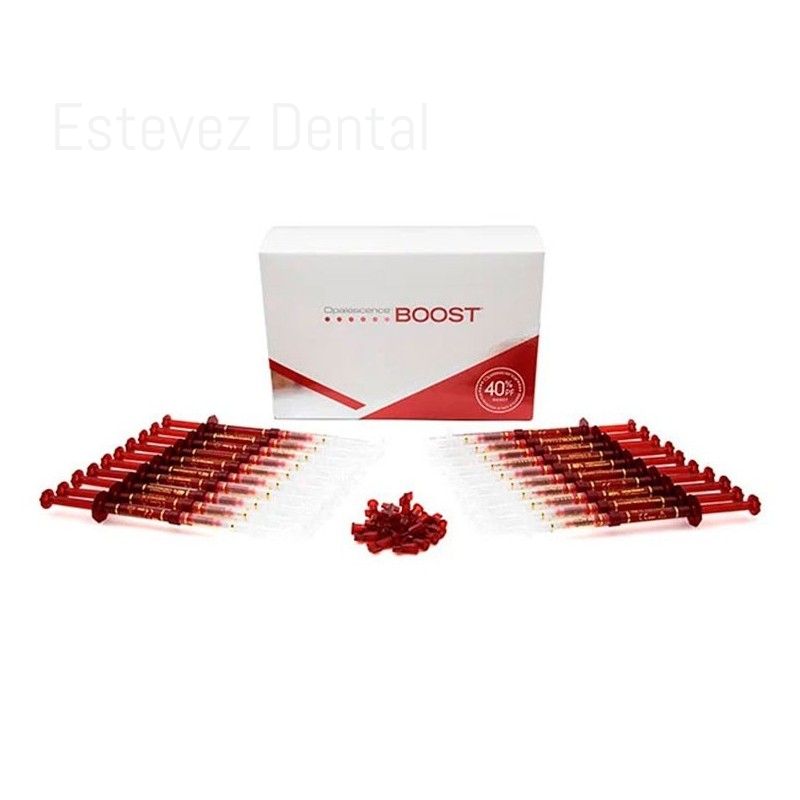Opalescence™ Boost™ es un método conservador alternativo para el tratamiento de los dientes oscuros y con decoloración interna (en comparación con coronas, carillas, etc.) consecuencia de enfermedades, lesiones o tratamiento médico como factores congénitos, sistémicos, metabólicos, farmacológicos, traumáticos o iatrogénicos, como fluorosis dental, ictericia, tetraciclina y manchas de minociclina en adultos, porfiria, trauma y eritroblastosis fetal. Opalescence™ Boost™ es un blanqueamiento dental médico en la clínica con resultados inmediatos y, en la mayoría de los casos, el efecto blanqueador continua entre 24 a 48 horas despuès del blanqueamiento por lo que un ligero cambio en el tono puede ocurrir durante este período de tiempo.