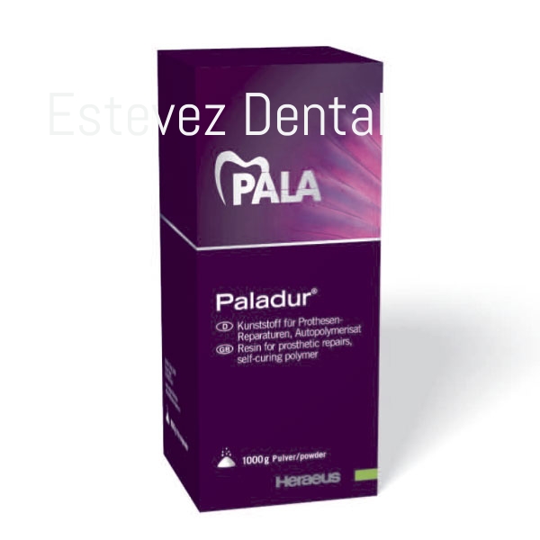 Acrílico para prótesis autopolimerizable a base de metacrilato libre de cadmio. Para reparaciones extensiones y rebases indirectos. Resina rápida segura y eficaz para la reparación de dentaduras. Paladur presenta una buena adhesión química tanto a resinas termopolimerizables como a resinas autopolimerizables.