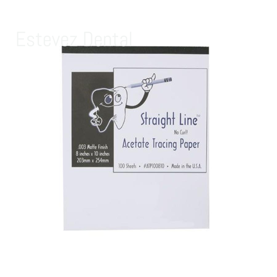 Tratado para evitar que las esquinas se levanten. El lado mate permite trabajar con lápiz o bolígrafo. Calidad excelente para trazar sobre telerradiografías y panorámicas. Bloc con papeles protectores entre cada hoja para evitar estática y para fácil manejo. 203 X 254mm Grosor del papel 0,076mm