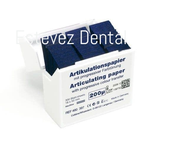 Papel de articular antiestático. Dibujo de contactos en colores intensos. Diferentes formas: U CI. Papeles en forma de U posibilitan el ensayo del arco totalcompleto. La capa bilateral azul/rojo permite el dibujo de diferentes movimientos.