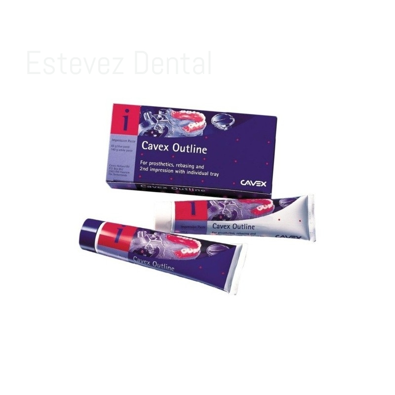 Cavex outline, Impression Paste sin eugenol es un material para la toma de impresiones en edéntulos. La pasta de impresión mezclada fluye con gran facilidad bajo una ligera presión, evitando cualquier deformación de tejidos blandos en el momento de sacar la impresión y reproduciendo con precisión todos los detalles.