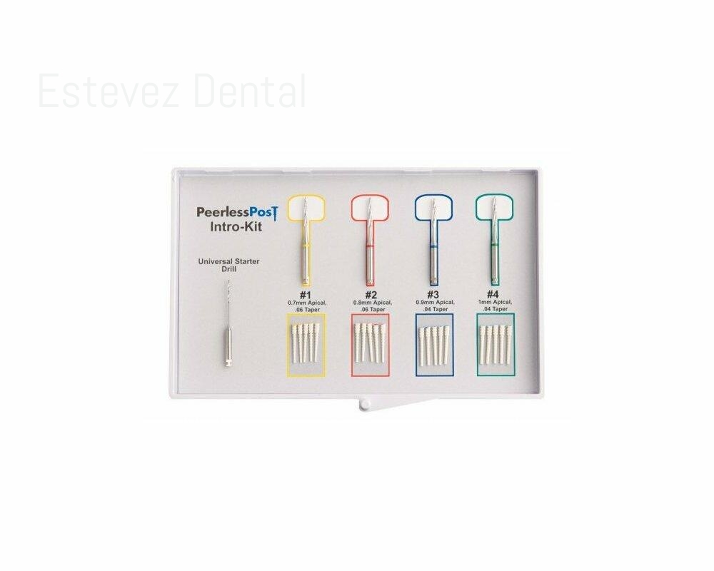 Los postes endodóncicos de fibra PeerlessPost se ajustan directamente en los conductos radiculares cónicos sin preparación adicional. Cada poste cuenta con tres segmentos apicales (1 mm) y cuatro segmentos clave coronales (1 mm) que se pueden recortar para adaptarse a cada diente, logrando el máximo contacto y conservación de la dentina. Se adaptan a cualquier forma y longitud de conducto. Los segmentos coronal y apical se ajustan con facilidad y precisión. Los exclusivos segmentos clave previenen la rotación y el desprendimiento. Las muescas integradas aumentan la superficie y mejoran la retención. Fáciles de retirar. Bajo módulo elástico y radiopacos. Adheridos, no cementados. Del color del diente.