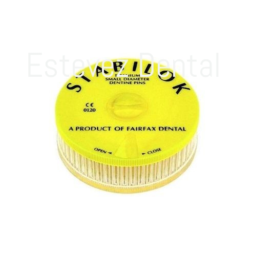 Los Pins Dentinarios Stabilok suponen una forma eficaz y económica de proporcionar retención mecánica extra para las restauraciones de dientes anteriores y posteriores. Una vez colocados en el diente, pueden reducirse en longitud y/o flexionarse hasta que adopten la posición deseada. Una gran ventaja de los Pins Dentinarios Stabilok es que se pueden sujetar de forma segura en el mango de un contra-ángulo hasta que esté listo para cortarse automáticamente en el diente a la profundidad adecuada.