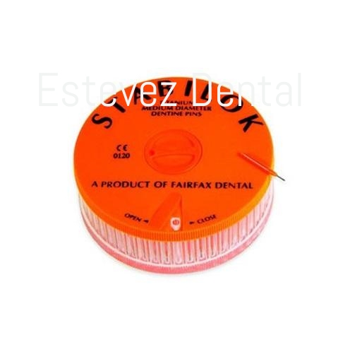Los Pins Dentinarios Stabilok suponen una forma eficaz y económica de proporcionar retención mecánica extra para las restauraciones de dientes anteriores y posteriores. Una vez colocados en el diente, pueden reducirse en longitud y/o flexionarse hasta que adopten la posición deseada. Una gran ventaja de los Pins Dentinarios Stabilok es que se pueden sujetar de forma segura en el mango de un contra-ángulo hasta que esté listo para cortarse automáticamente en el diente a la profundidad adecuada.