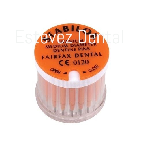 Los Pins Dentinarios Stabilok suponen una forma eficaz y económica de proporcionar retención mecánica extra para las restauraciones de dientes anteriores y posteriores. Una vez colocados en el diente, pueden reducirse en longitud y/o flexionarse hasta que adopten la posición deseada. Una gran ventaja de los Pins Dentinarios Stabilok es que se pueden sujetar de forma segura en el mango de un contra-ángulo hasta que esté listo para cortarse automáticamente en el diente a la profundidad adecuada.