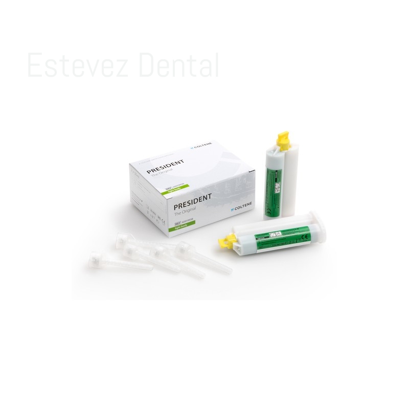 PRESIDENT LIGHT BODY 2 x 50 mlCARACTERÍSTICAS:- Los materiales de corrección PRESIDENT son estables, aunque fluyen con gran libertad bajo presión para captar con precisión todos los detalles marginales- Sus propiedades hidrofílicas se ven favorecidas por los surfactantes del material- En contacto con la humedad, estos aditivos se mueven hasta la superficie y reducen la tensión de la zona, mejorando así la humectabilidadCONTENIDO:- 2 Cartuchos de 50 ml- 12 Puntas de mezcla universales