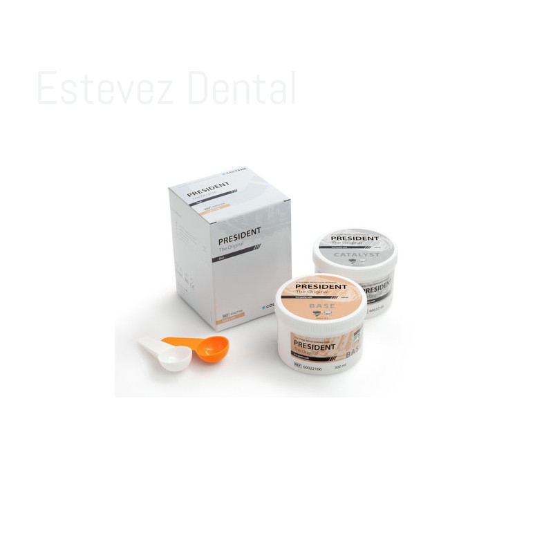 PRESIDENT PUTTY SOFT FASTCARACTERÍSTICAS:- Los materiales de cubeta PRESIDENT destacan por su elevada resistencia al desgarre y su elasticidad. Gracias a su perfecta extracción, las impresiones son precisas y satisfactorias, incluso en las condiciones más difíciles.- PRESIDENT heavy body y MonoBody tienen la tecnología de afinidad y tixotropía ideales, y generan una presión que lleva el material a todas las zonas clínicamente críticas.- Las masillas PRESIDENT putty se mezclan con rapidez y están disponibles en tres durezas finales distintas para cada caso individual.CONTENIDO:- Base de 300 ml- Catalizador 300 ml- 2 Cucharillas