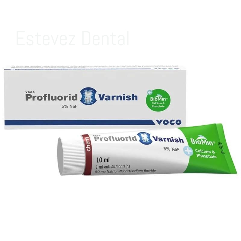 Profluorid® Varnish + BioMin® es un barniz de fluoruro para la desensibilización dental. La versión + BioMin de Profluorid incorpora el biovidrio soluble de la empresa BioMin Technologies Ltd. El biovidrio BioMin se disuelve en la saliva y libera iones de calcio y fosfato, que contribuyen a la remineralización del diente. En combinación con el fluoruro del Varnish, se forman en la superficie dental estructuras cristalinas que logran, entre otros beneficios, endurecer significativamente un esmalte dental debilitado por la acción de los ácidos.