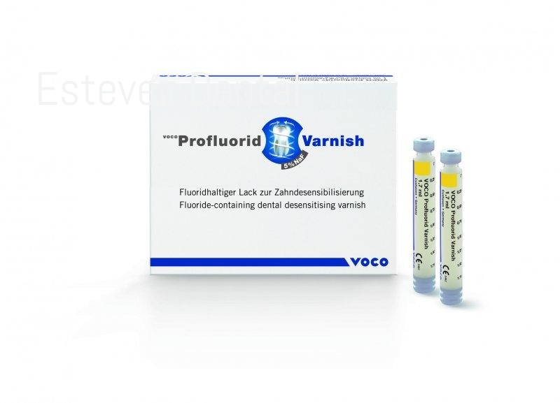 PROFLUORID VARNISH MELON 5x1,7 mlCARACTERÍSTICAS: - Tolerante a la humedad- Laca estética y del color del diente- Desensibilización rápida y liberación de fluoruro (5 % NaF 22.600 ppm fluoruro)- Disponible en siete sabores diferentes: melón, menta, cereza, caramelo, bubble gum, Cola Lime y piña colada- Aplicación económica en capas finas, productivo- Ideal para el tratamiento de los cuellos sensibles del diente después de la profilaxis y la eliminación del cálculo dental- Óptimo en caso de HIMINDICACIONES: - Tratamiento de dientes hipersensibles- Tratamiento de superficies radiculares sensiblesCONTENIDO:- 5 ampollas cilíndricas 1,70 ml