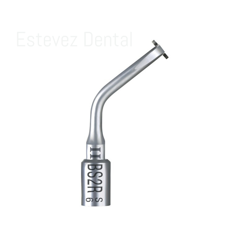 INSERTO CIRUGÍA BS2RCARACTERÍSTICAS:- Sierra con cuatro dientes, utilizada para cortar el hueso cortical del ramus- Orientada a la derecha, se usa para crear líneas de osteotomía verticales y horizontales en la mandíbula izquierda del paciente